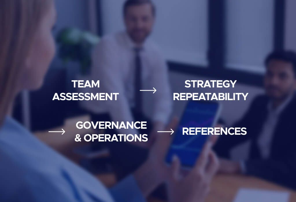 Evaluation focuses heavily on team pedigree, investment discipline, repeatable fund strategy, and qualitative factors over short-term performance metrics.