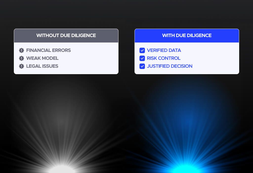 In practice, due diligence is not only about identifying risks. It also supports valuation, validates growth assumptions, and helps investors assess whether the team can execute. A well-structured review provides clarity on both downside scenarios and real upside potential, turning uncertainty.