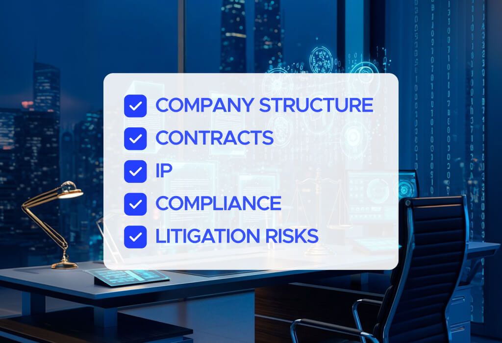 Legal problems can weaken valuation, slow the round, or stop the deal. Investors need to confirm proper company structure, clear IP ownership, legal compliance, and the absence of major disputes.